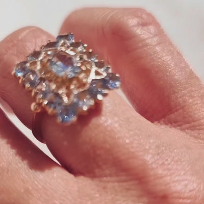 Vintage Goldring aus 18 Karat Gelbgold besetzt mit blauen Edelsteinen